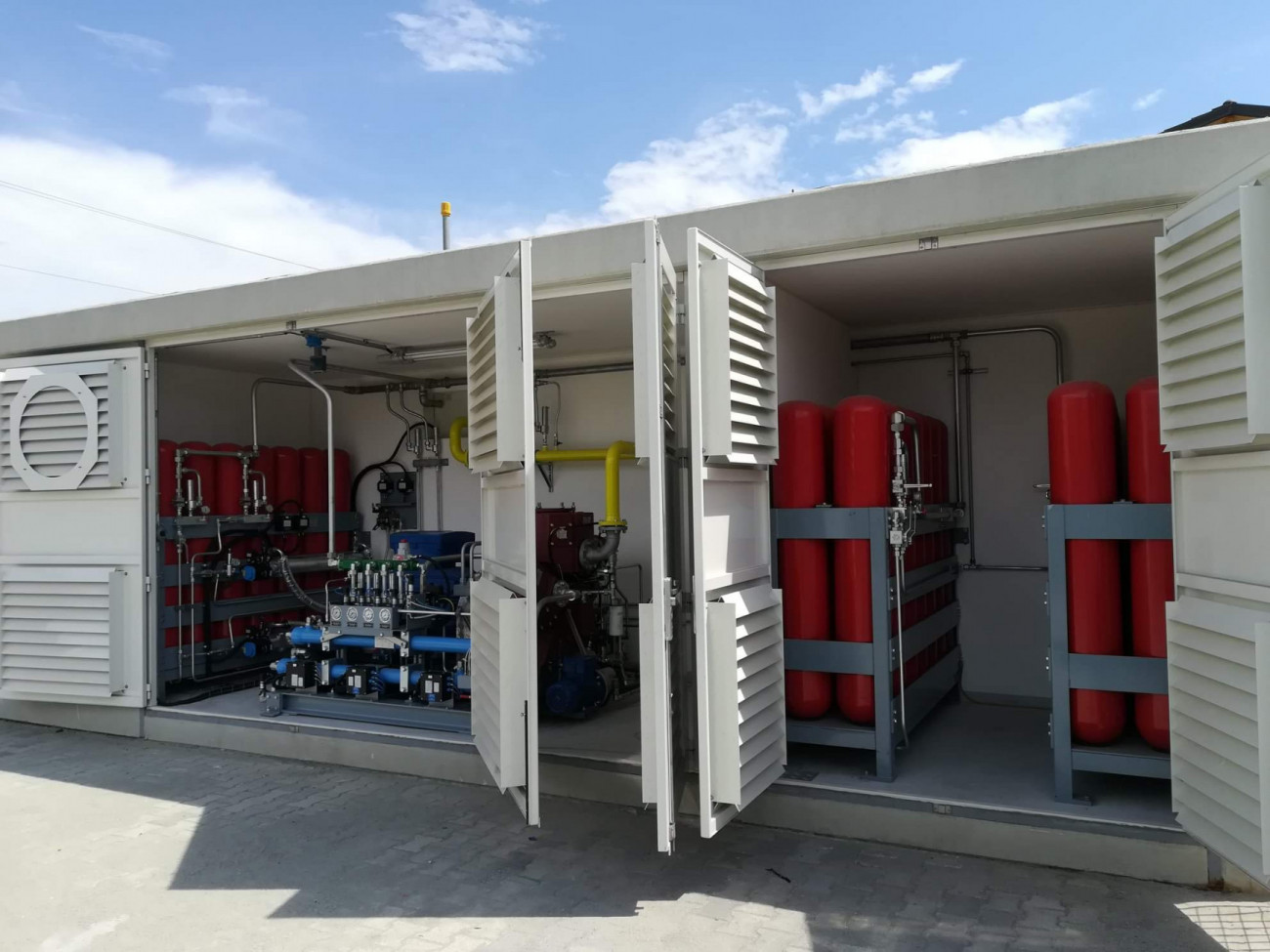 Полный технологический комплект в одном корпусе: компрессор TP60, блок осушки газа, аккумуляторы, панель управления, КИП